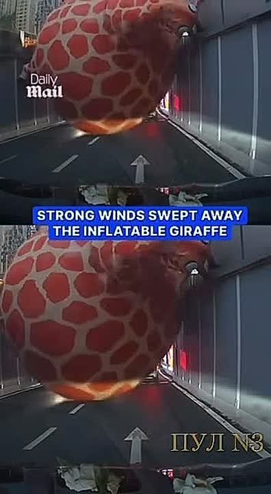 В Китае произошла самая неожиданная пробка - надувной жираф улетел и перегородил тоннель.