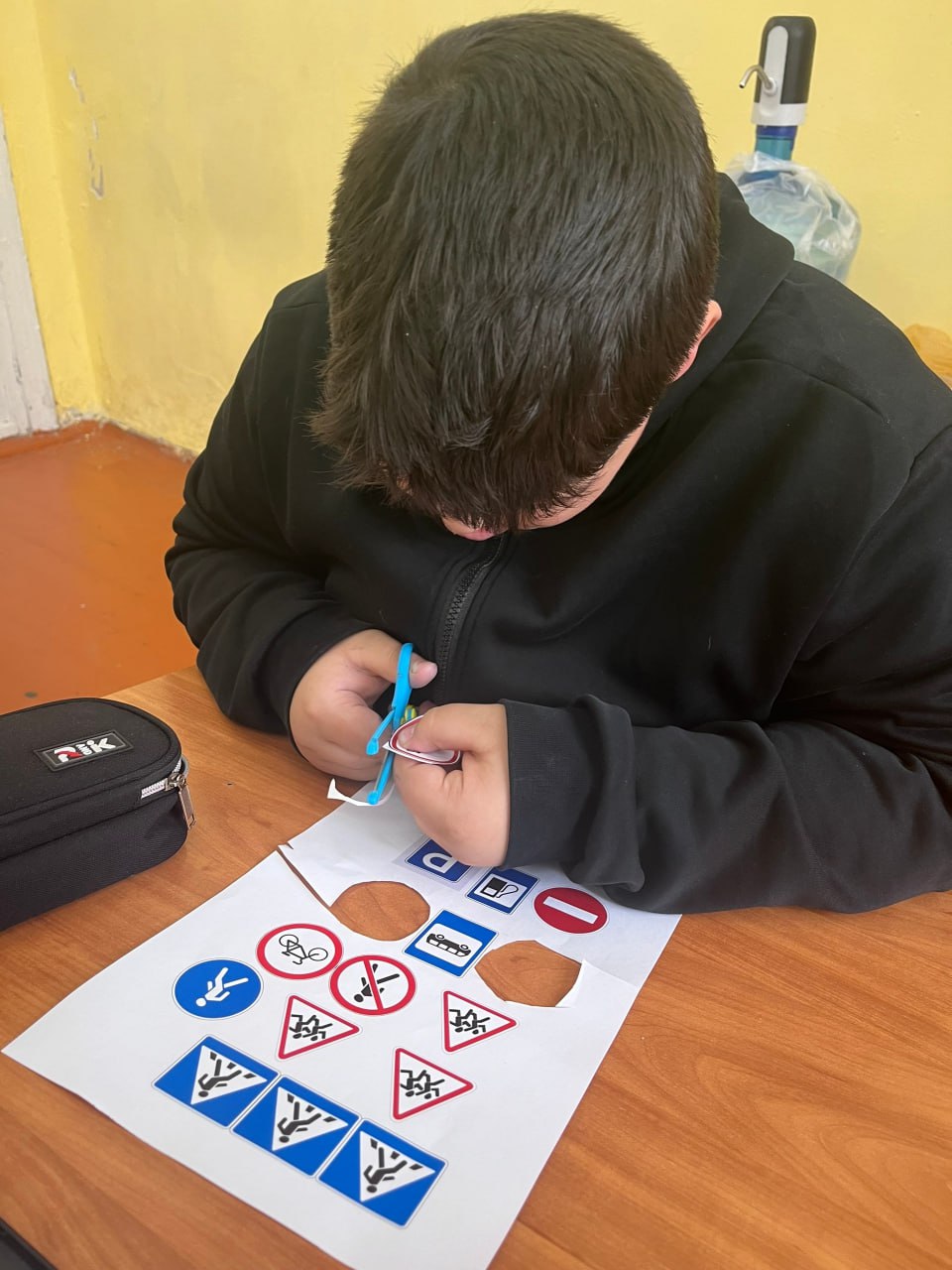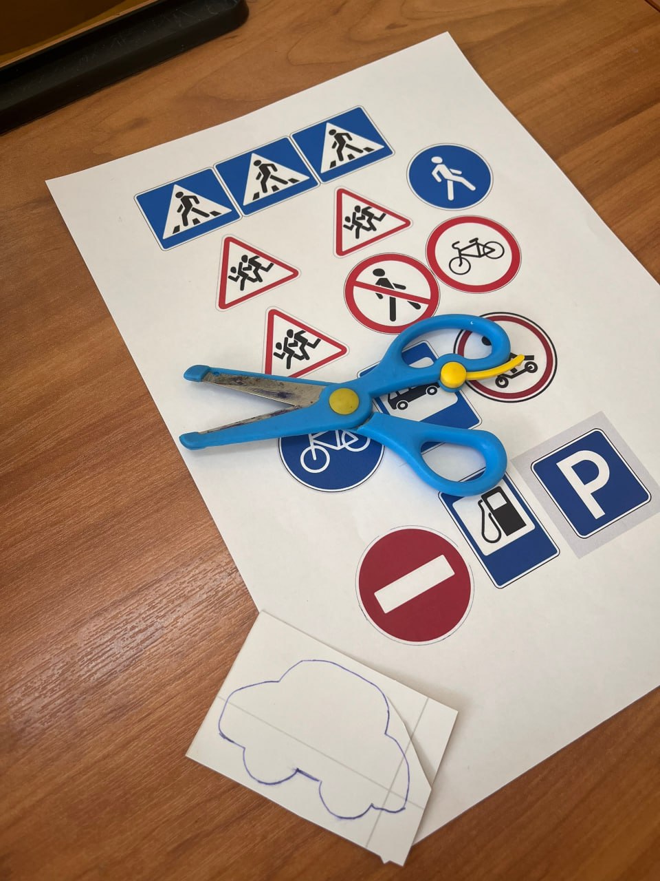 После теории перешли к практике. Ребята вместе с инспектором изготовили световозвращающие элементы. Вырезали формы, собирали наборы для рюкзаков и верхней одежды.