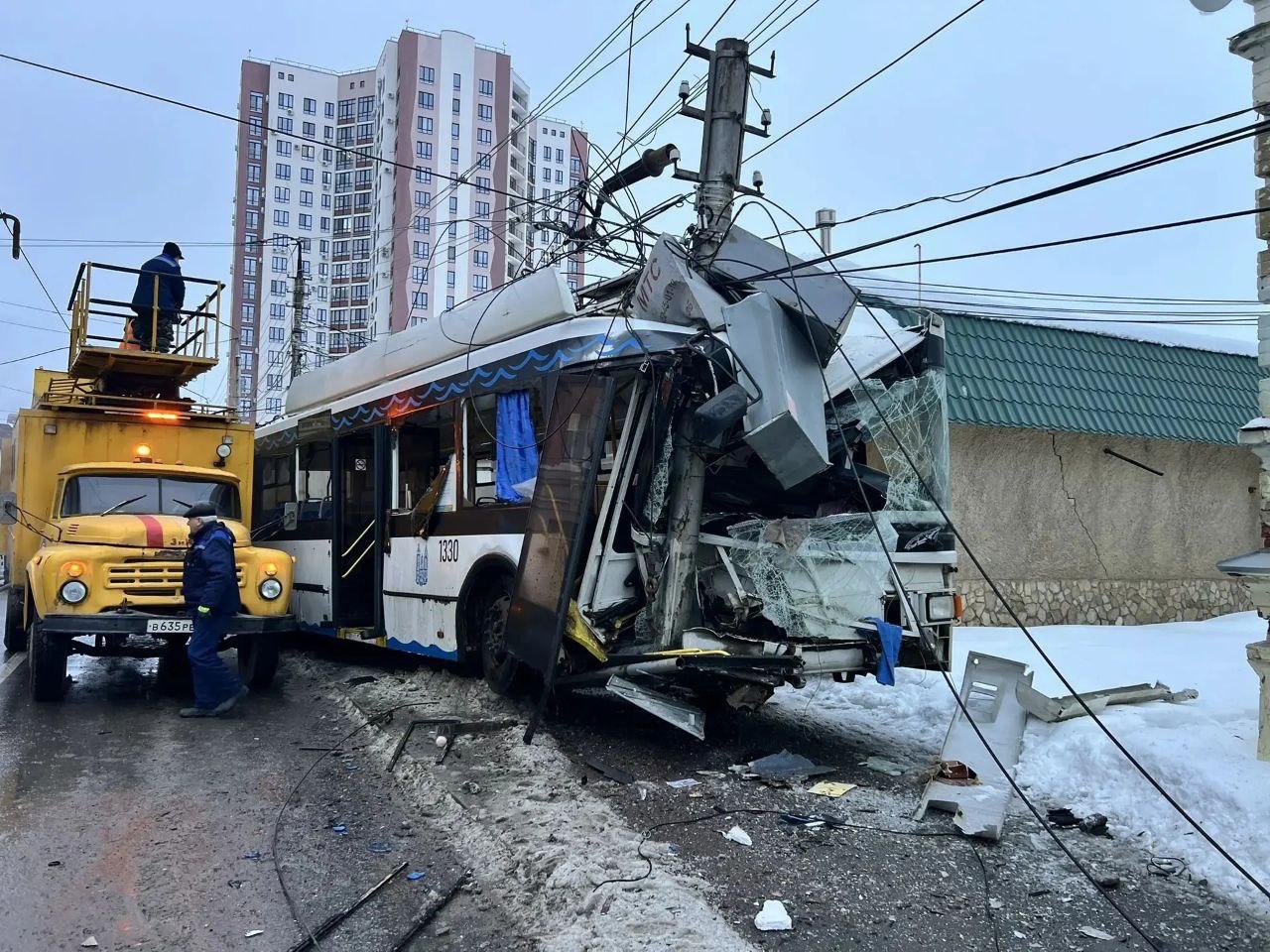Восемь пострадавших и две машины всмятку — жуткое ДТП в Энгельсе. На улице Максима Горького столкнулись троллейбус и автомобиль Changan.