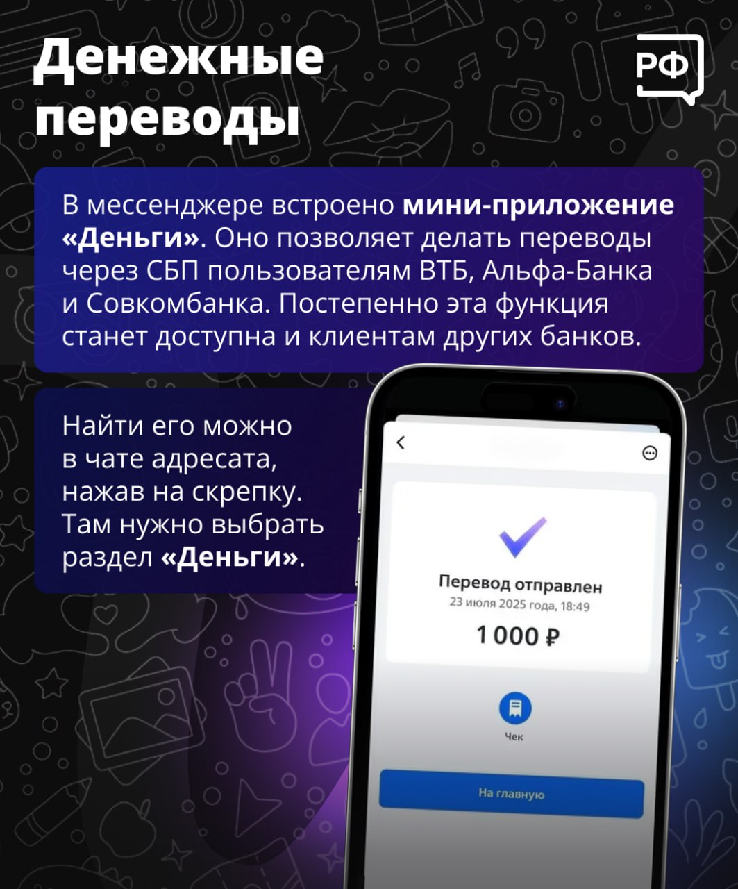 Подписывать документы и переводить деньги можно в МАХ — национальный мессенджер заменяет сразу несколько приложений. Листайте карточки!