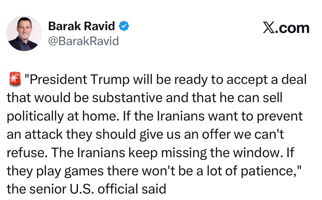 Корреспондент Axios Равид - о том, что Трамп не нападет на Иран, если Тегеран предложит "выгодную сделку":