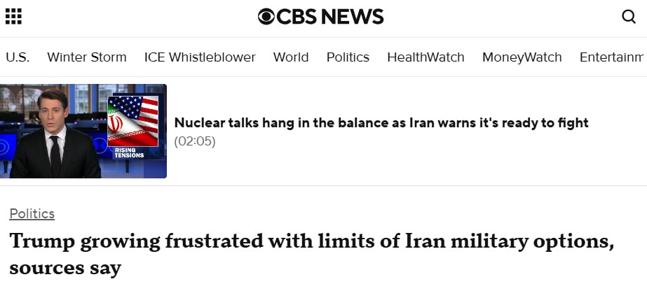 Президент США Дональд Трамп всё больше разочарован тем, что его советники не могут предложить вариант удара по Ирану, который гарантированно заставил бы Тегеран капитулировать без риска большой войны. Амбиции наталкиваются на суровую реальность, признают источники телеканала CBS.