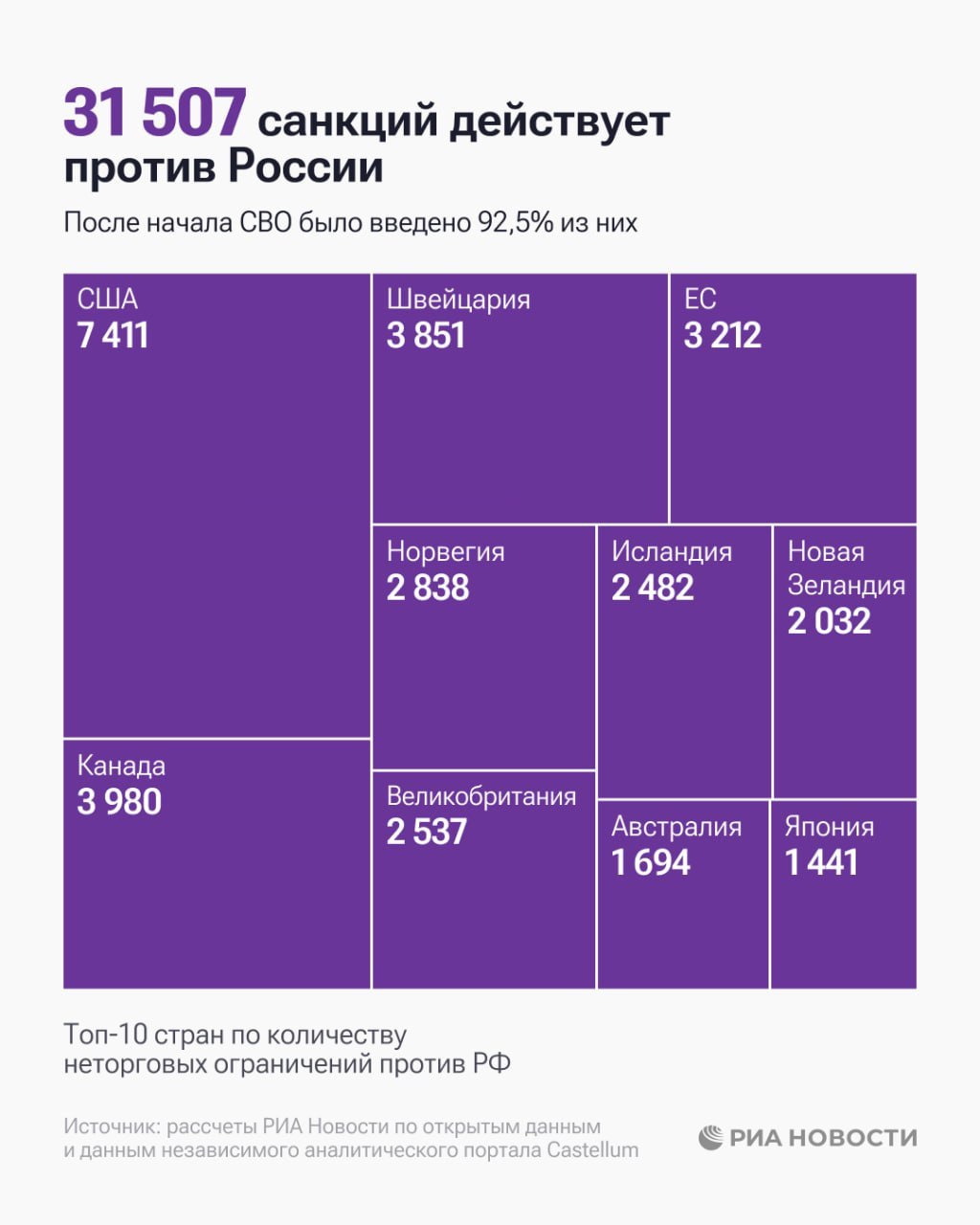 Число антироссийских санкций Запада, введённых после 2014 года, превысило 31,5 тыс., — констатируют эксперты