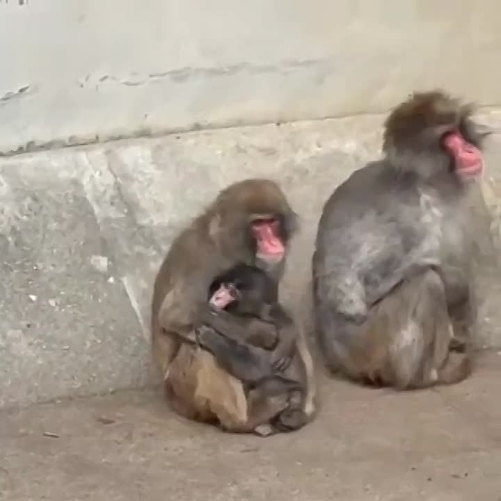Продолжение истории: малыша макаки Панча приняли в стаю. Взрослая обезьяна даже обняла маленького. Пусть у него все наладится