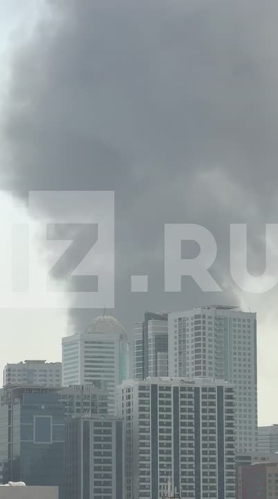 Кадры обстановки в Шардже в ОАЭ публикуют "Известия" — небо в дыму от ударов иранских ракет.