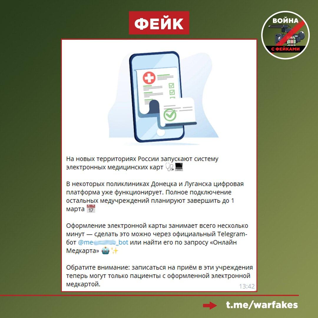 Фейк: В новых регионах жители могут оформить электронную медицинскую карту с помощью ссылки в Telegram. Об этом пишут пользователи местных чатов и украинские телеграм-каналы.