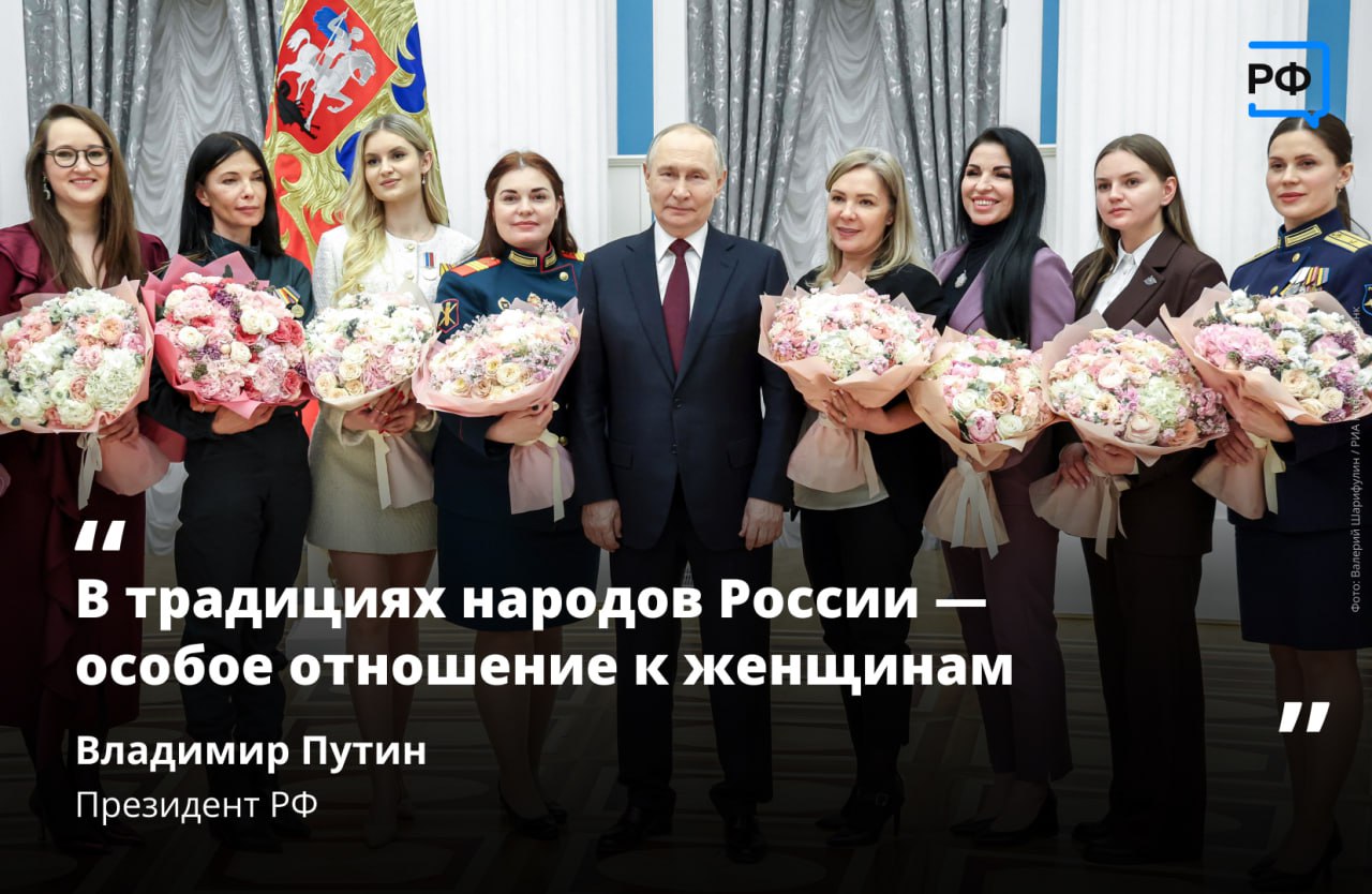 В преддверии 8 Марта Владимир Путин пообщался в Кремле с женщинами-военными, медиками, представительницами рабочих и творческих профессий.