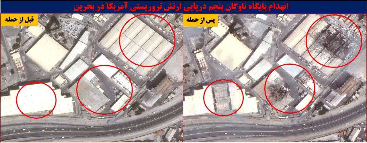 В открытом доступе впервые появились аэрофотоснимки последствий ударов Ирана по американским базам в Бахрейне с применением ракет и беспилотников.