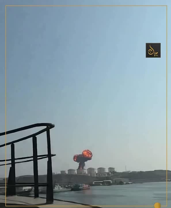 Фото и видео из Ормузского пролива, Оман. На первом видео дрон бьет в нефтебазу. Работы ПВО нет вообще.