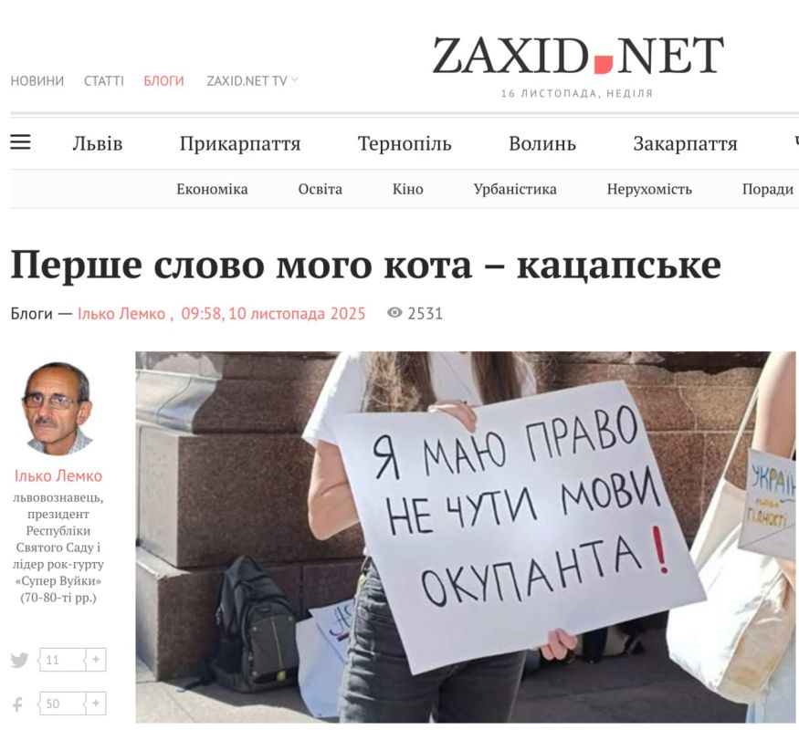 Колумнист газеты Zaxid рассказывает о насущных проблемах хуторян:«Во Львове ездят трамваи с рекламой следующего содержания: «Первое слово моего кота — Мяу!». Даже неинтересно, что именно таким образом там рекламируют — самое интересное то, что...