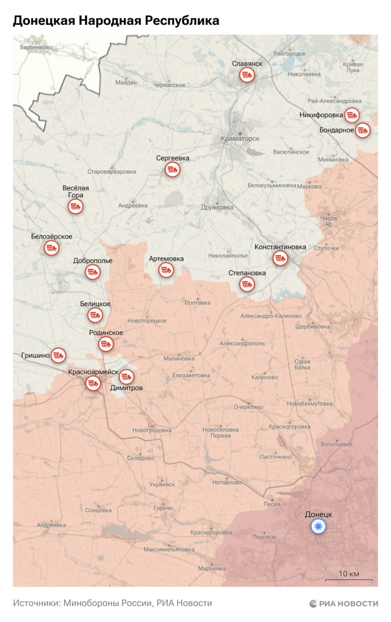 ВС России зашли в Гришино в ДНР, сообщили в Минобороны.
