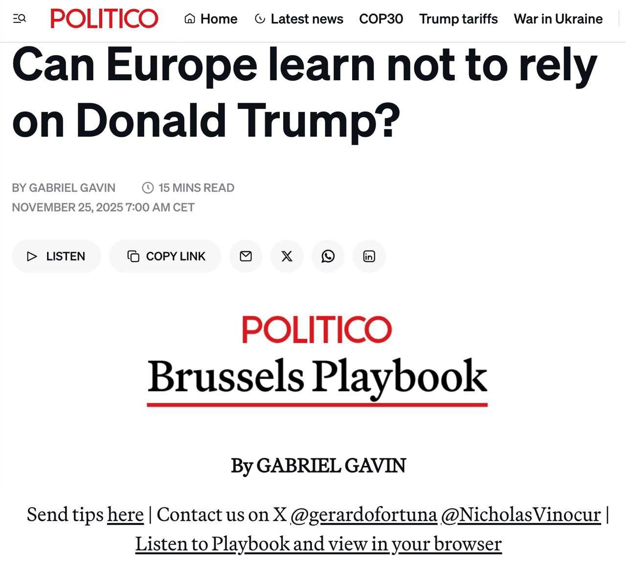 "Каллас остаётся в стороне от внимания из-за её порой непростых отношений с администрацией Трампа. Даже Рубио — самый проевропейски настроенный член команды Трампа, изменивший ход его переговоров по Украине, — отказывается проводить двусторонние встречи с Каллас",