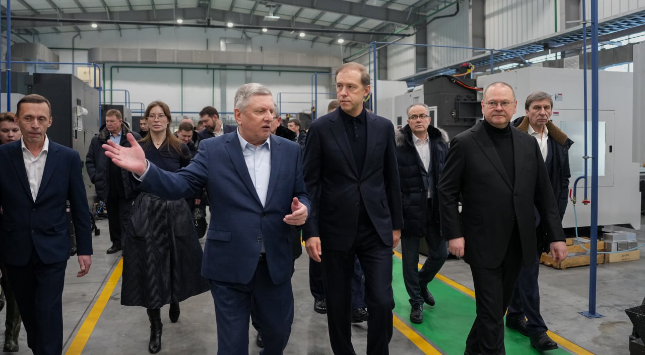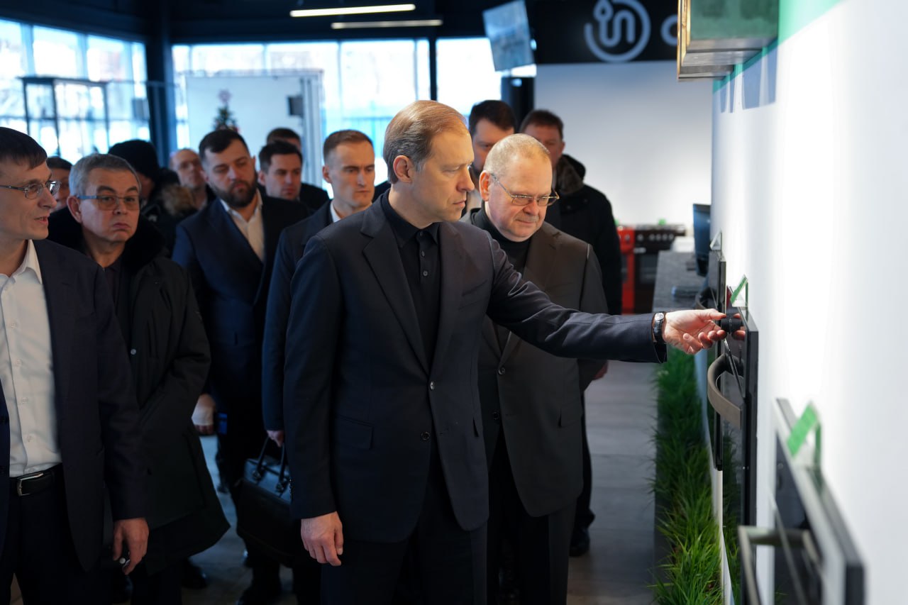 Первый вице-премьер ознакомился с производственной деятельностью одного из ведущих предприятий России по изготовлению средств телекоммуникации и связи, также ему показали процесс создания печатных плат и других изделий.