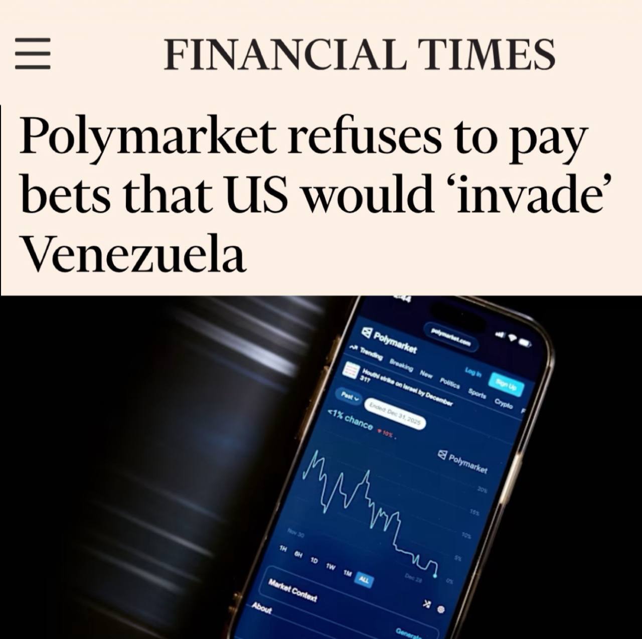 Платформа прогнозов Polymarket не выплатит выигрыши за ставки на вторжение США в Венесуэлу - Financial Times