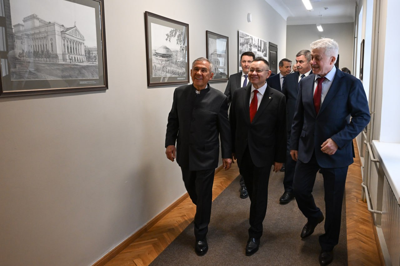 В рамках поездки в Татарстан Ирек Файзуллин посетил Казанский государственный архитектурно-строительный университет, где ознакомился с проектами молодых ученых, а также посетил ряд инфраструктурных объектов, среди которых новое здание Кировского районного суда.
