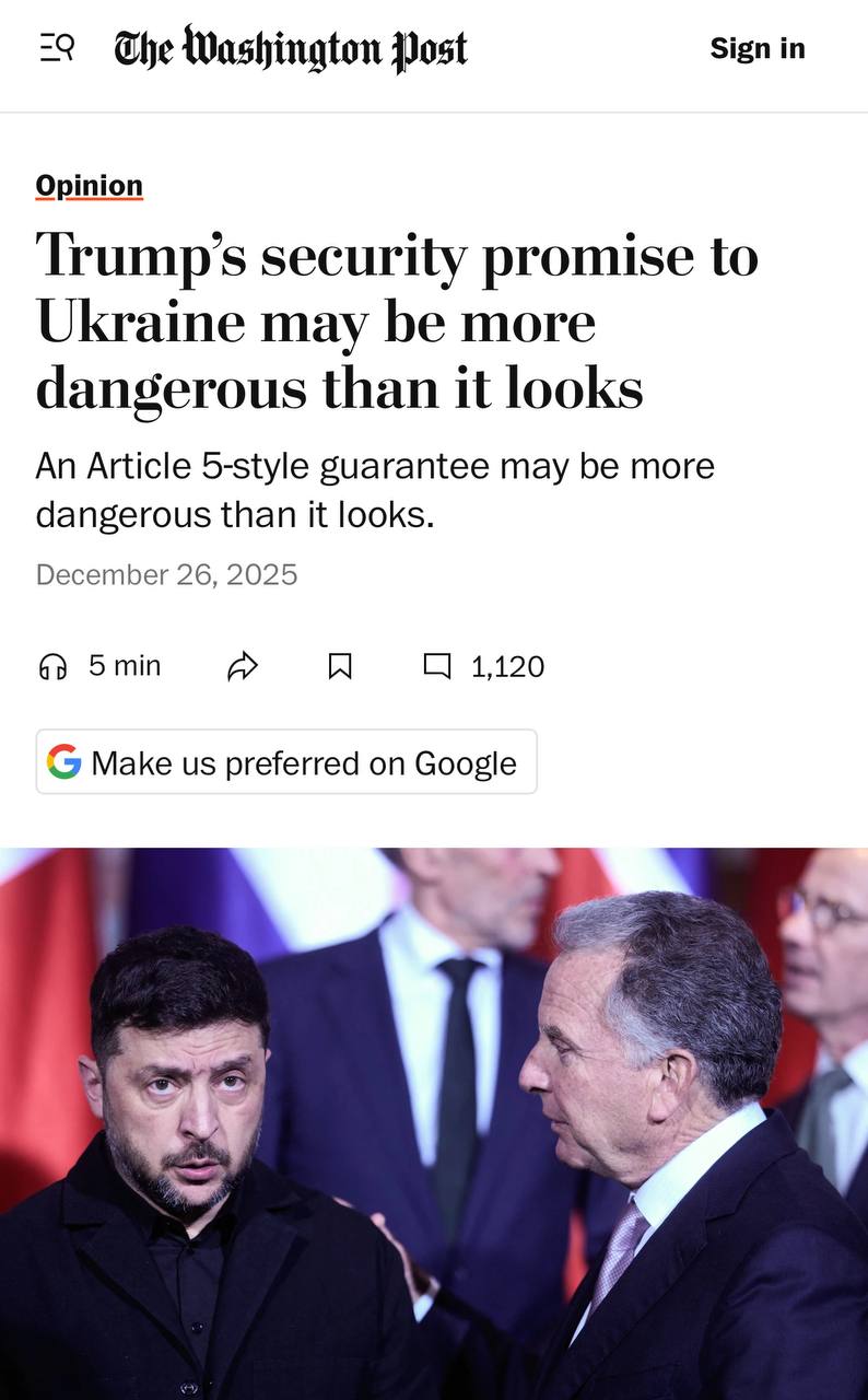 Гарантии безопасности, которые Вашингтон готов предоставить Киеву, опасны для самих США - The Washington Post