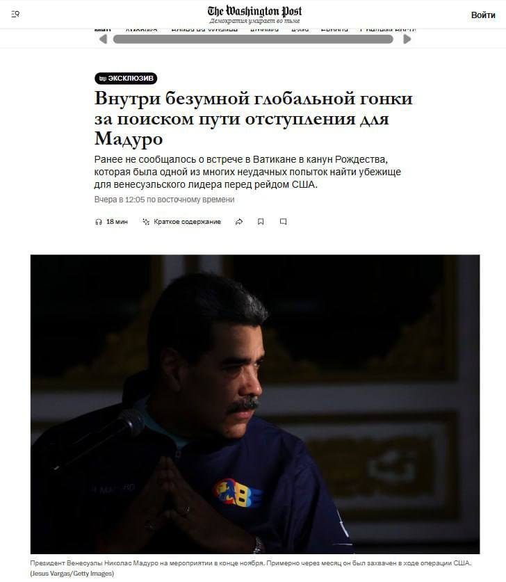 Ватикан во время тайных переговоров просил США дать Мадуро сбежать в Россию — Washington Post
