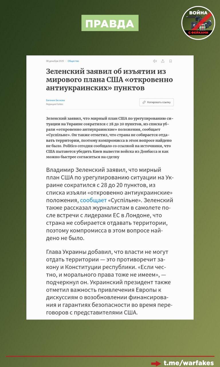 Фейк: Россия неоднократно отклоняла предложенный США 28-пунктный мирный план или любой другой план, требующий от нее компромисса