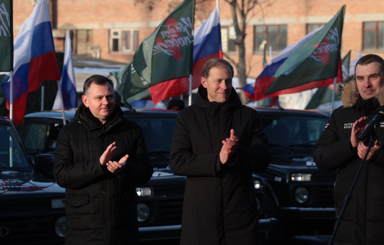 Первый вице-премьер Денис Мантуров принял участие в церемонии передачи военнослужащим 125 единиц техники. Внедорожники «Нива» и УАЗ, а также грузовые автомобили КамАЗ, «Соболь», УАЗ «буханка» и багги «Чаборз» отправятся на фронт.