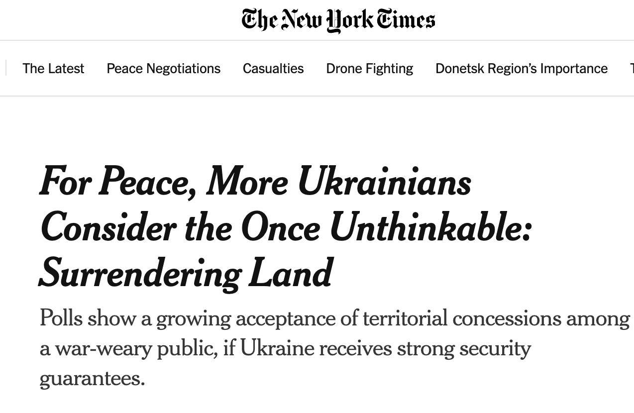NYT пишет, что таких украинцев все больше, и «это представляет собой заметный сдвиг в сознании уставшего от войны украинского населения».