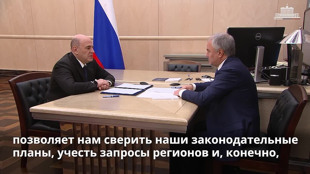 Михаил Мишустин встретился с председателем Государственной Думы Вячеславом Володиным