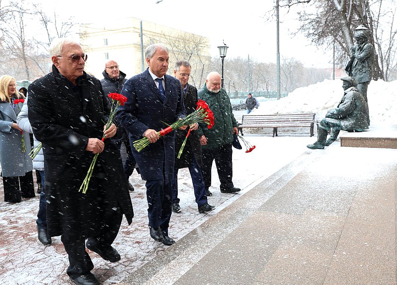 Вячеслав Володин и Дмитрий Чернышенко совместно с членами оргкомитета почтили память Станислава Говорухина и возложили цветы к мемориальной доске, открытой в его честь на фасаде здания ВГИКа. Также они осмотрели тематическую выставку.