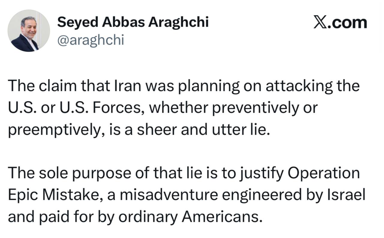 Глава МИД Ирана Аракчи – опроверг утверждения о том, что Иран планировал напасть на США: