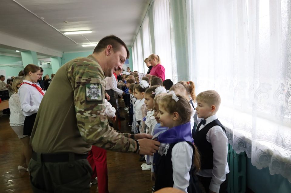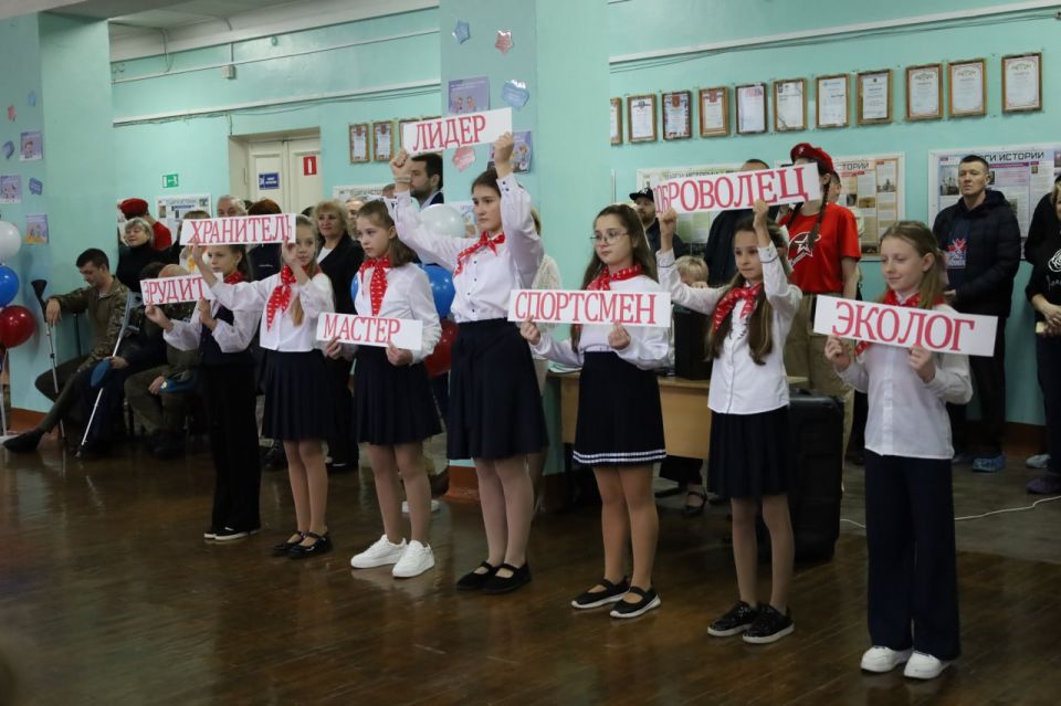 С этим торжественным событием ребят поздравили директор центра образования Юрий Белов, а таже почетные гости – муниципальный координатор советников по воспитанию и взаимодействию с детскими общественными объединениями Светлана Краснобаева, заместитель директора детской школы «Академии Михайлова» Кирилл Щербаков, участники боевых действий в Афганистане и Чечне, участники специальной военной операции.