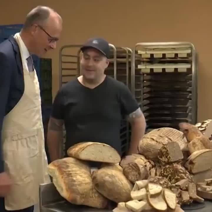 На видео Мерц безмерно радуется родному немецкому хлебушку.