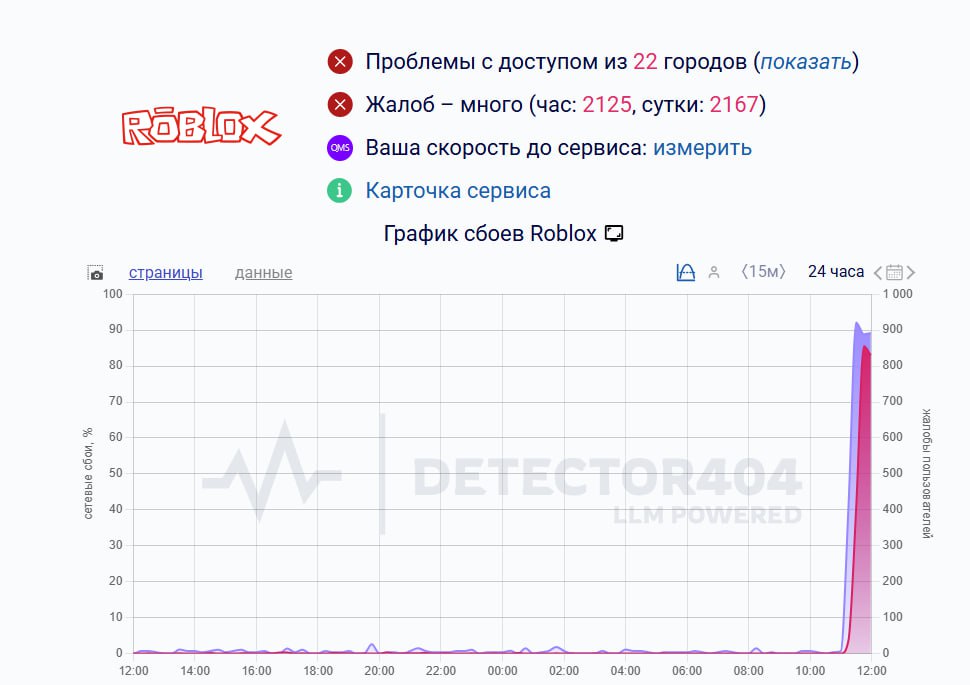 Россияне сообщают о сбоях в работе игры Roblox – на профильном портале за час уже больше 2000 жалоб.