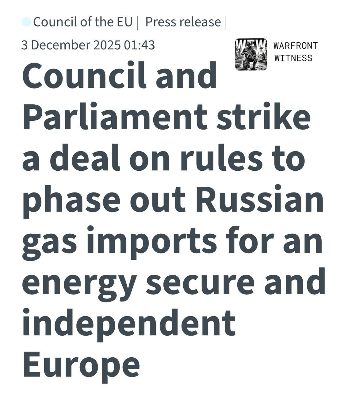 Европейский совет и Европарламент проголосовали за полное устранение импорта газа из России в ЕС к концу 2027 года