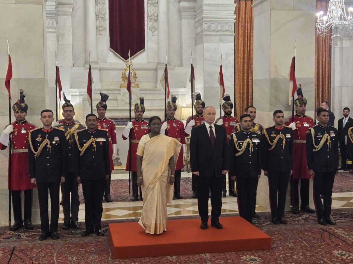 Президент Индии Дроупади Мурму проводит государственный прием в честь Владимира Путина.