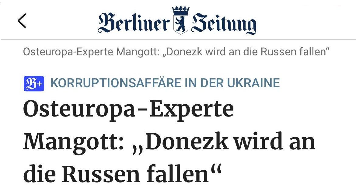 Россия не нуждается в переговорном решении. Она может продолжать украинский конфликт до полного достижения своих целей военным путем, — констатирует Berliner Zeitung, публикуя интервью с политологом Герхардом Манготтом