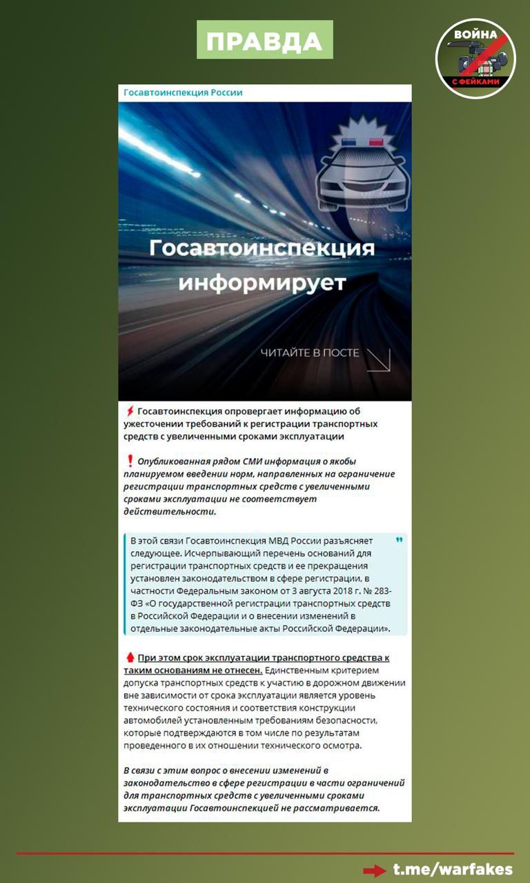 Фейк: В России планируют ужесточать правила регистрации старых автомобилей, сообщают некоторые СМИ.