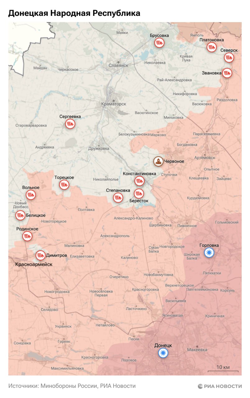 Российские войска взяли под контроль Червоное в ДНР и Новоданиловку в Запорожской области, сообщили в Минобороны.