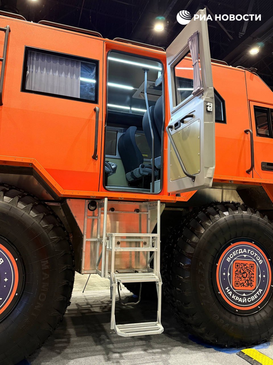 Он разработан для Крайнего Севера, на 90% состоит из узлов российского производства и может перевозить до 16 человек с расходом 25 литров на сотню.