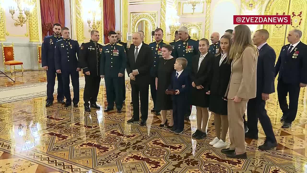 Маленький, но трогательный диалог между сыном Героя России Никиты Афанасьева Антоном и Владимиром Путиным перед общей фотографией.