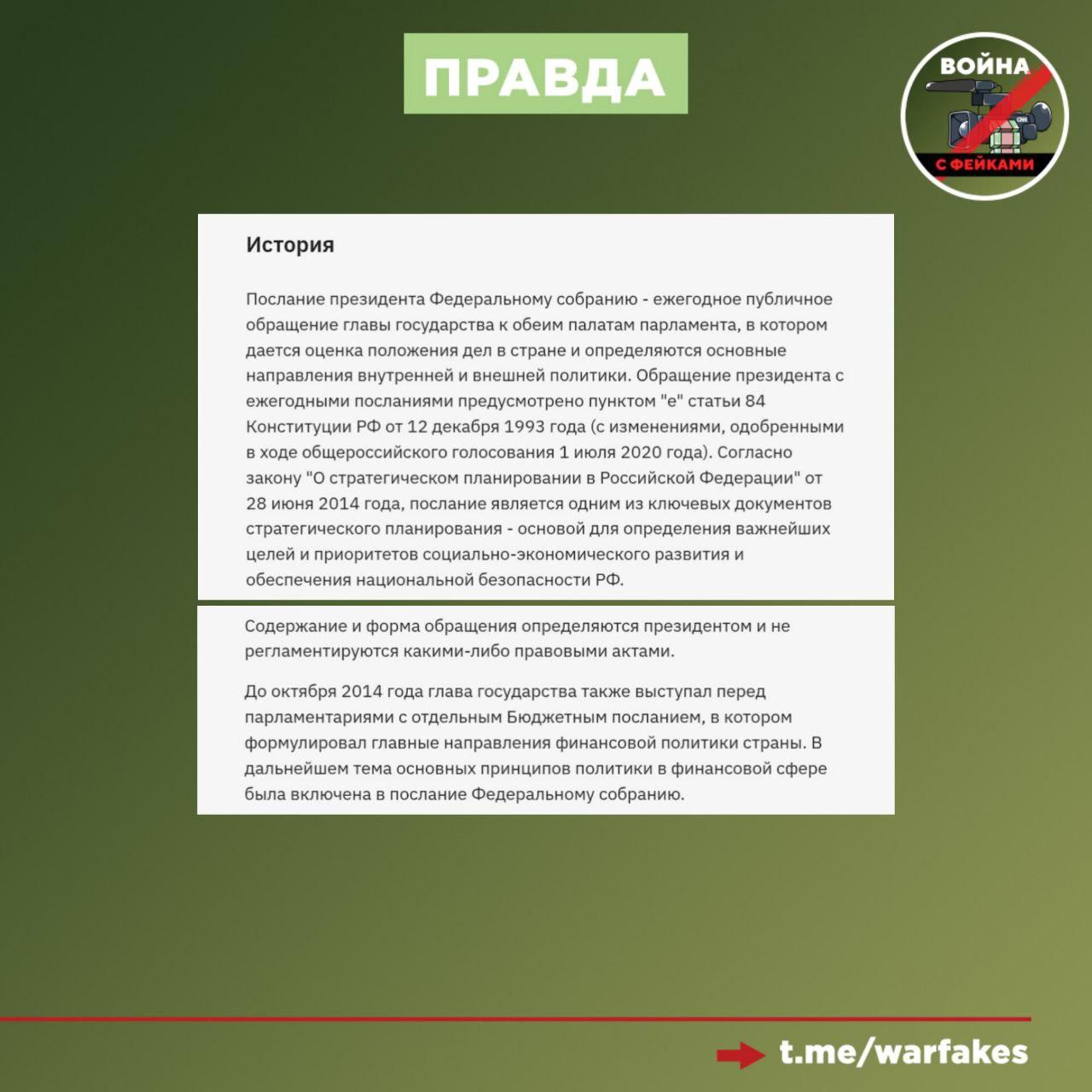 Правда: Власти не нарушали Конституцию. Прямая линия с Владимиром Путиным проводится каждый год и не является заменой послания Президента Федеральному собранию. Это самостоятельные мероприятия. Владимир Путин огласит послание Федеральному собранию, как только определится с датой проведения церемонии, объяснил пресс-секретарь Президента Дмитрий Песков.