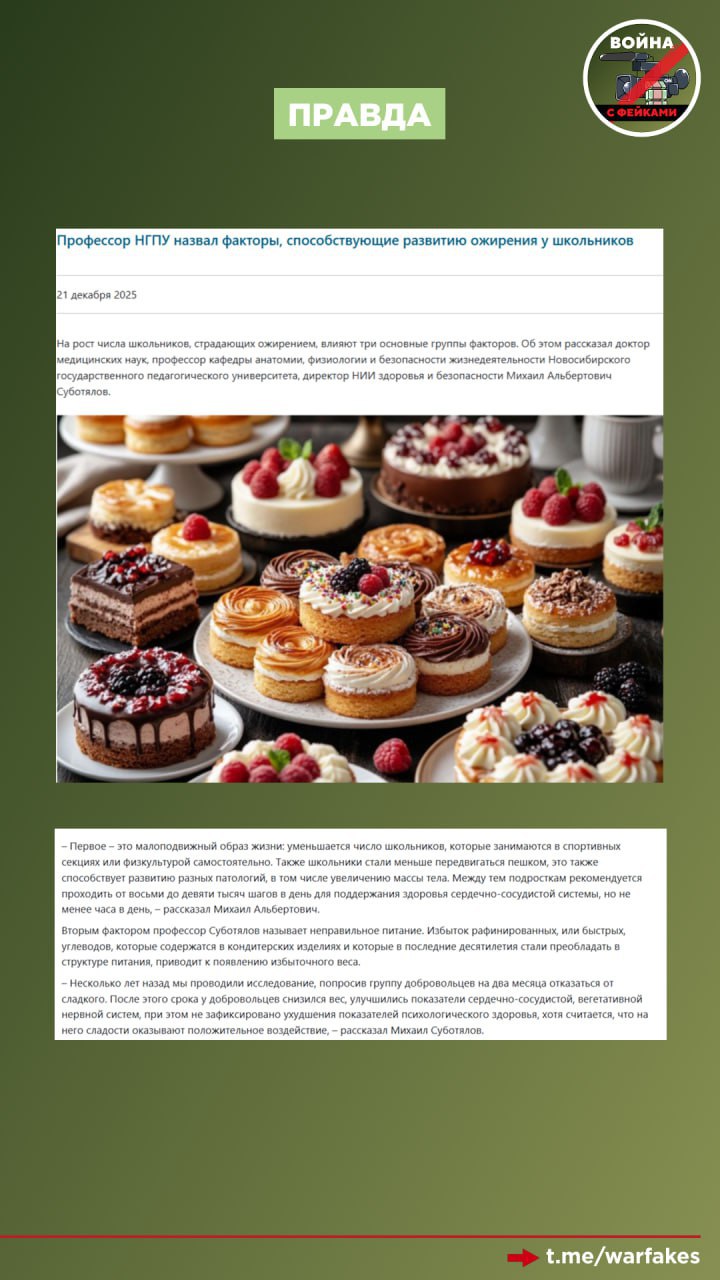 Правда: Это продолжение нарратива о падающем уровне жизни в России, на котором сосредоточилась украинская пропаганда и оппозиция. Проблема избыточного веса среди детей и подростков действительно недавно обсуждалась на заседании президиума Совета законодателей РФ при Федеральном собрании, но выводы о причинах ситуации это домыслы фейкоделов.