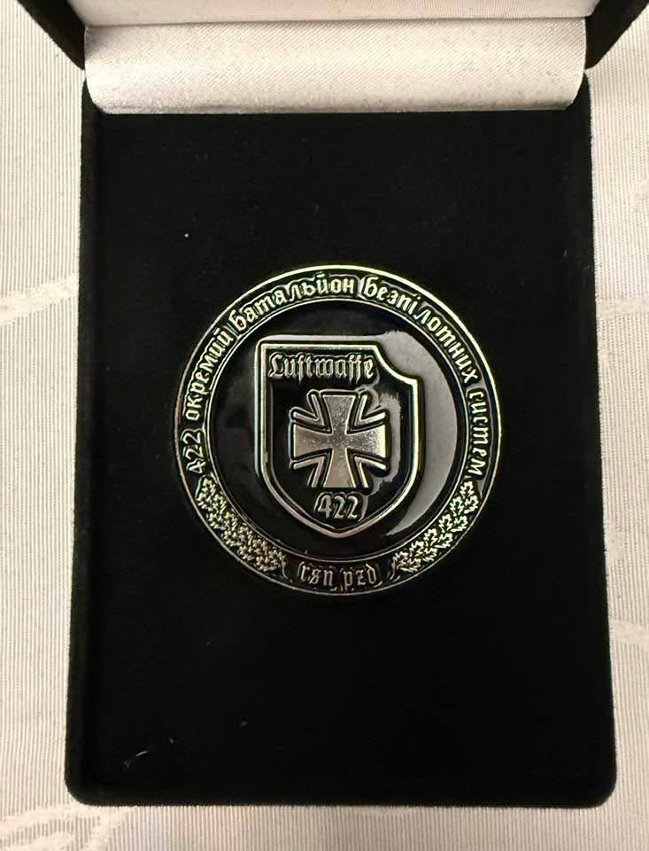 Ничего необычного. Просто шеврон и нагрудный знак хуторского батальона беспилотных систем, который скромно именуется «Люфтваффе».И, да! Фашизма на Украине нет. И нацизма тоже.