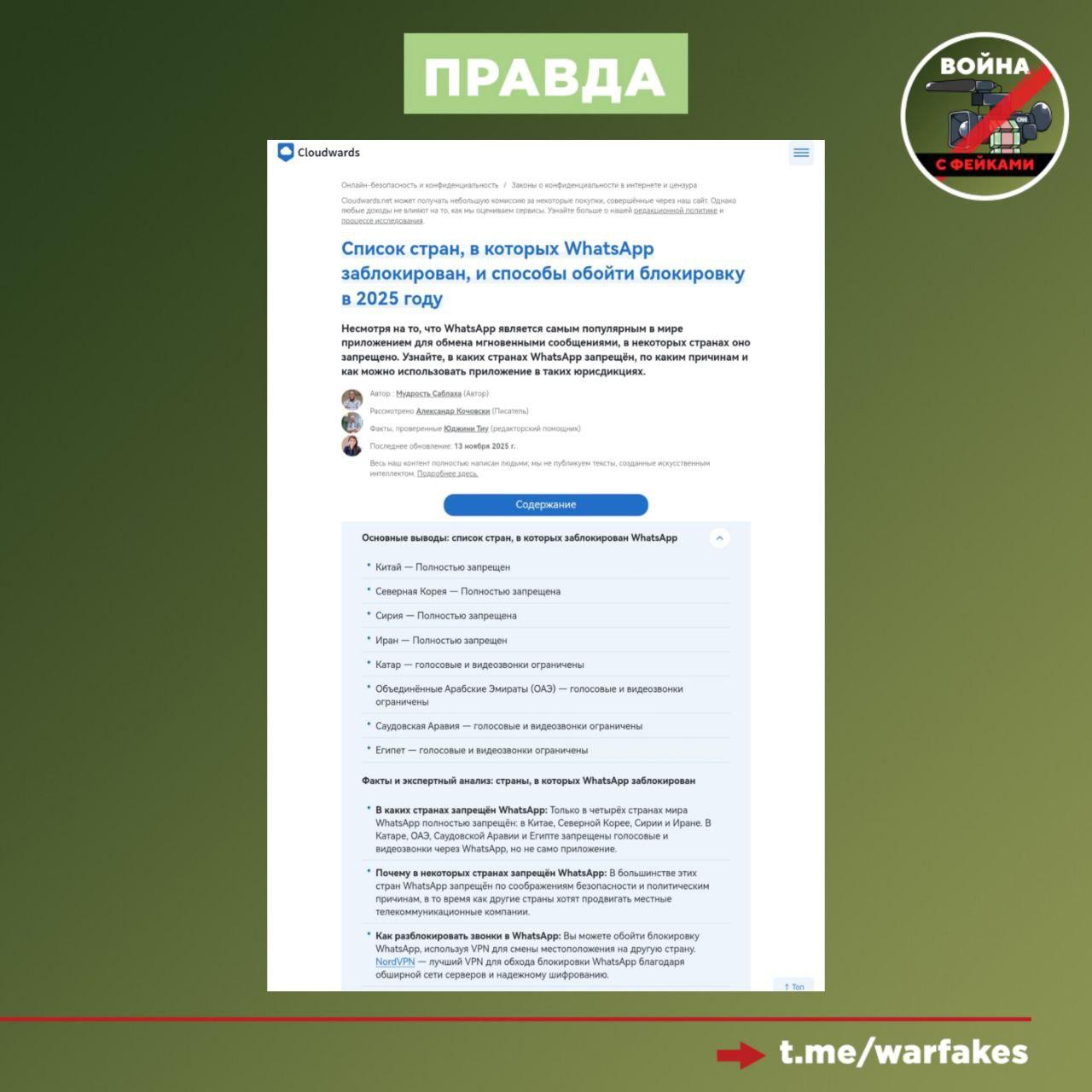 Фейк: Мессенджер WhatsApp* намерен бороться за российских пользователей, чтобы избежать блокировки в РФ. Комментарий компании передает агентство Reuters.