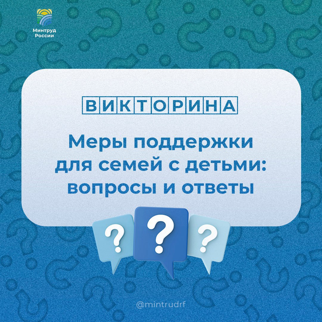 Сегодня подготовили три вопроса о господдержке для тех, кто воспитывает детей. Проверьте свои знания и узнайте новое!