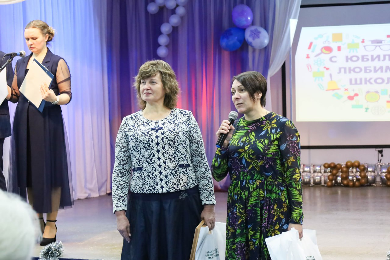 Юбилейный вечер прошёл в стенах школы. Педагоги, ученики и бывшие выпускники подготовили к юбилею трогательные выступления.