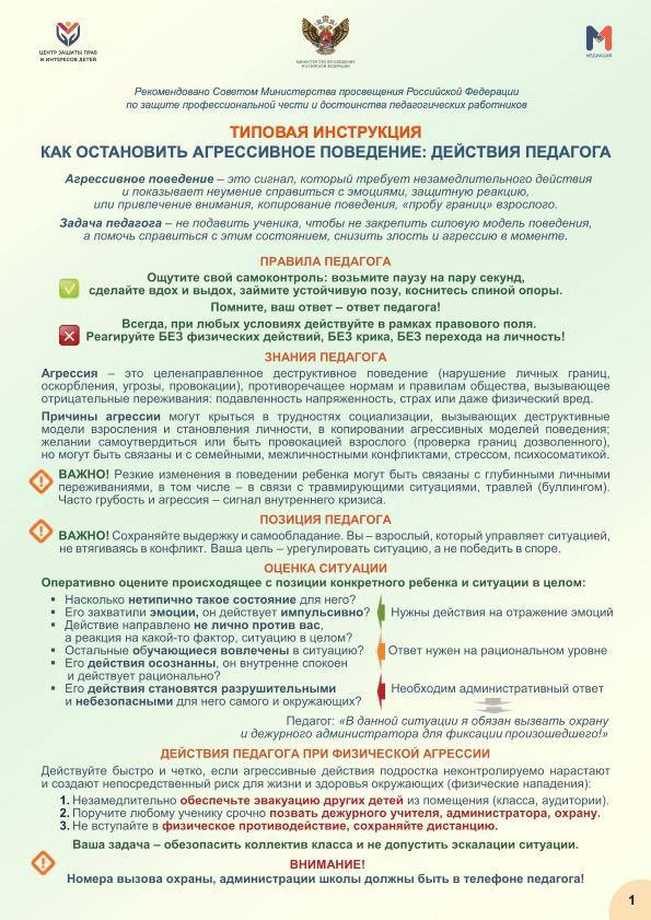 Минпросвещения РФ направило в регионы инструкцию по действиям педагогов в конфликтных ситуациях, сообщили ТАСС в пресс-службе ведомства.