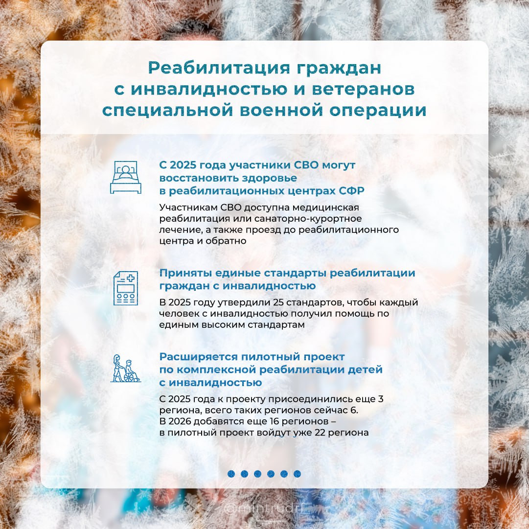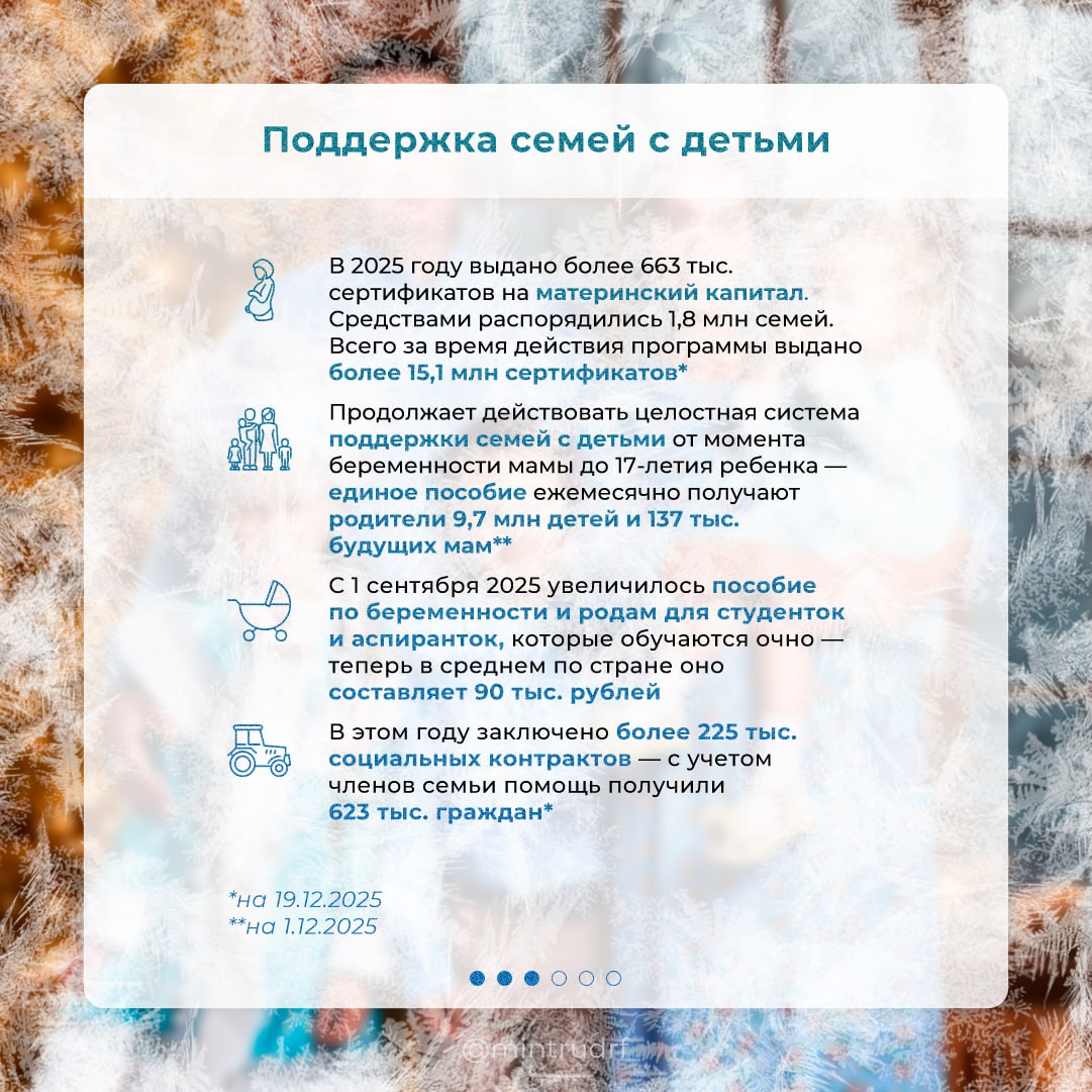 Меры поддержки семей с детьми, граждан с инвалидностью и пожилых, модернизация службы занятости и другие результаты 2025 года – в карточках