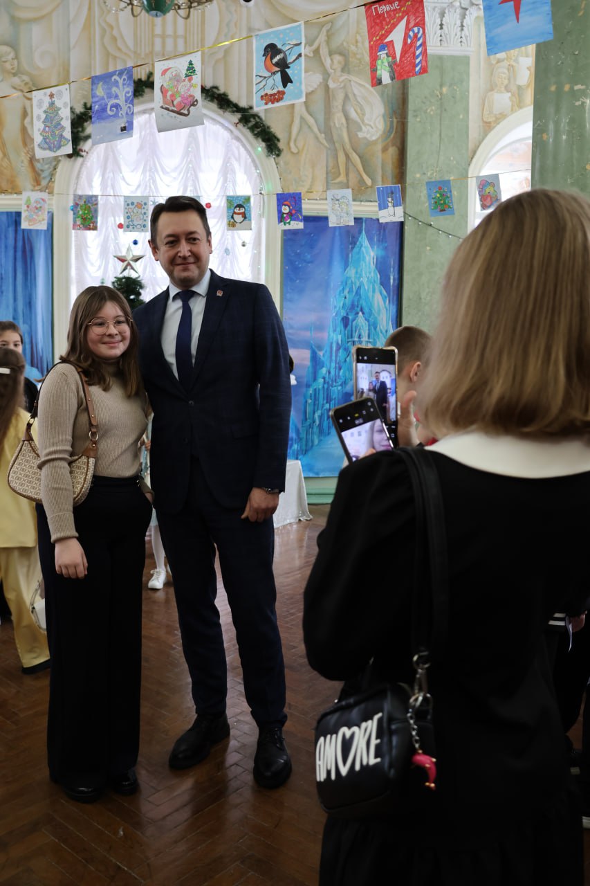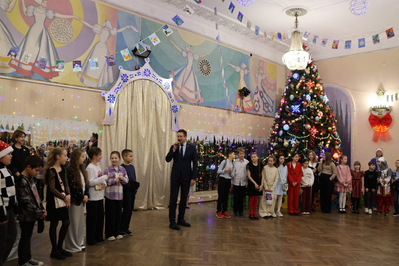 Мальчишек и девчонок поздравил с приближающимся праздником глава администрации Новомосковска Руслан Бутов. Он пожелал школьникам в следующем году отличной учебы и исполнения желаний, а потом вместе с ребятами перенесся в мир сказки и волшебства, где девочка Саша встретилась в волшебном лесу с Зимушкой-Зимой и Снегурочкой, а потом вместе с Кощеем Бессмертным и Бабой Ягой училась делать добрые дела. А творческие коллективы ДДЮТ и ребята им активно в этом помогали и в конце все вместе, с Дедушкой Морозом, зажгли новогоднюю елочку.