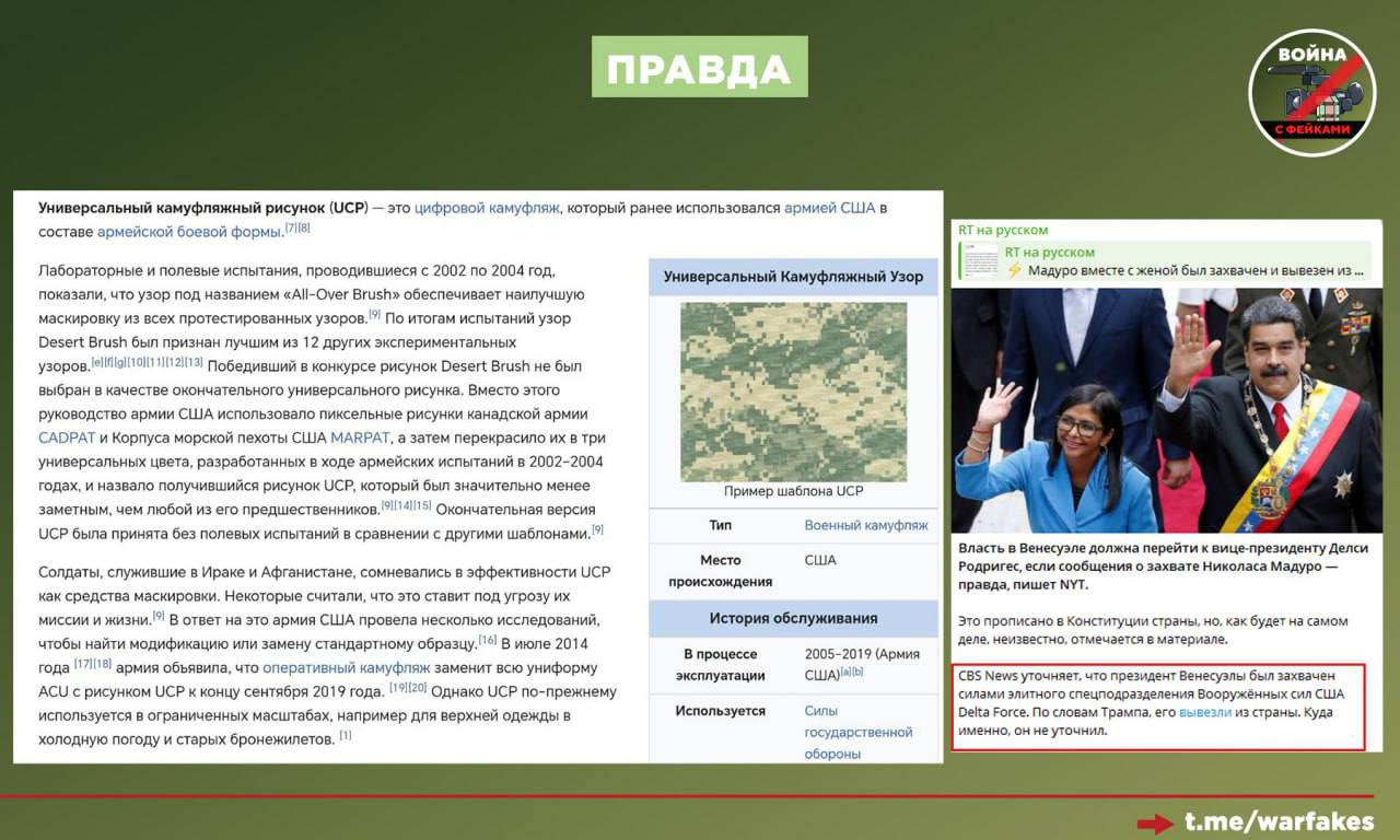 Напоминаем вам, что в настоящее время, в связи с нетривиальными событиями в мире, наблюдается избыток непроверенной или заведомо недостоверной информации. Не доверяйте сомнительным источникам, особенно тем, кто уже демонстрировал некомпетентность и целенаправленно распространял фейки. Официальной информации о местонахождении и перемещениях Николаса Мадуро на данный момент нет.