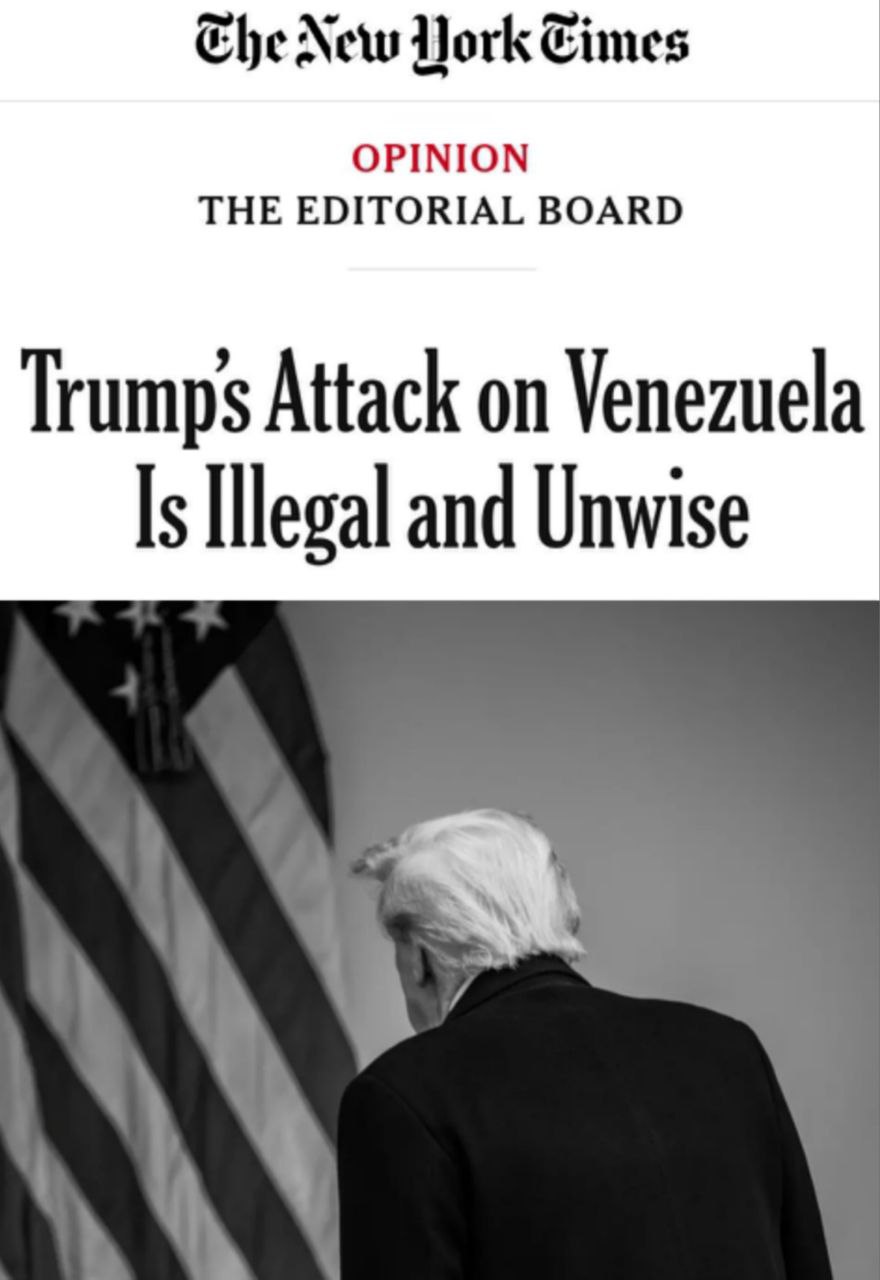«Нападение Трампа на Венесуэлу незаконное и бездумное»: The New York Times раскритиковала действия Трампа, заявив, что он ввергает страну в кризис.