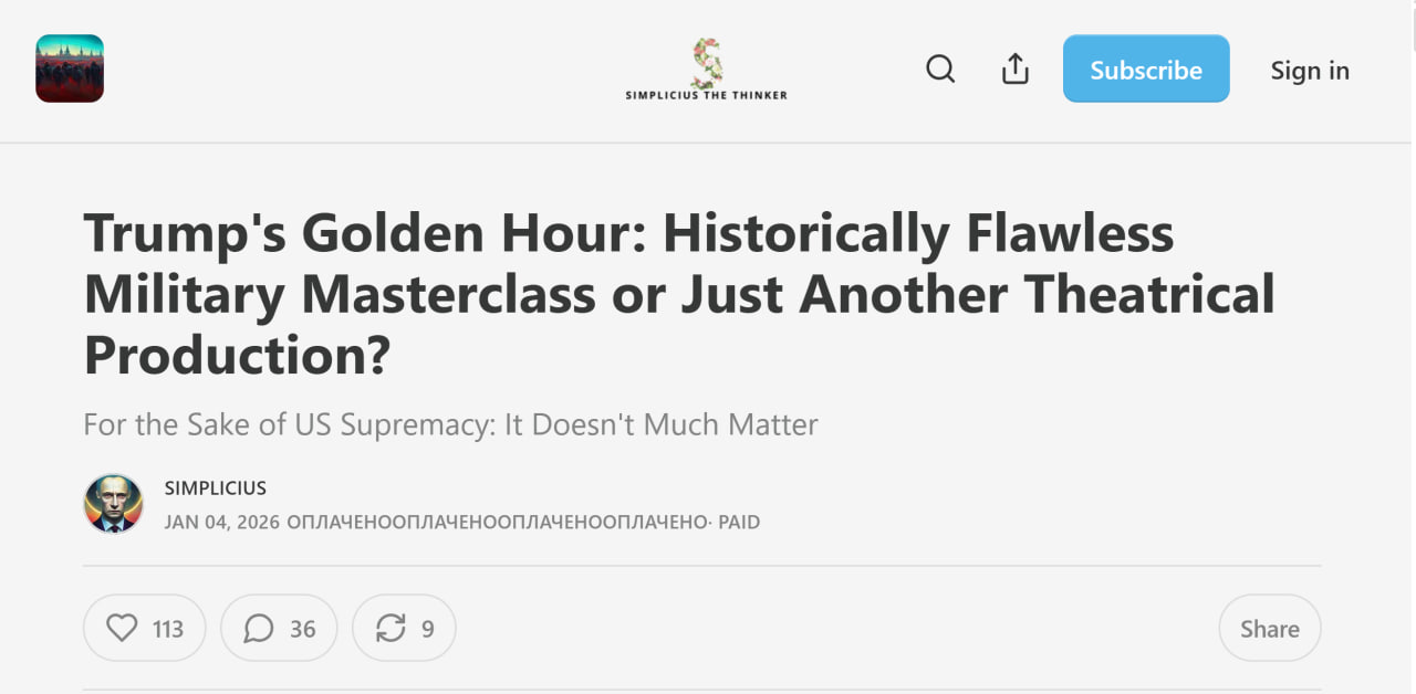 По оценке Simplicius, операция США в Венесуэле может рассматриваться как успешная спецоперация или как ограниченное силовое действие с политическим расчётом, значение которого выходит за рамки сугубо военного аспекта.