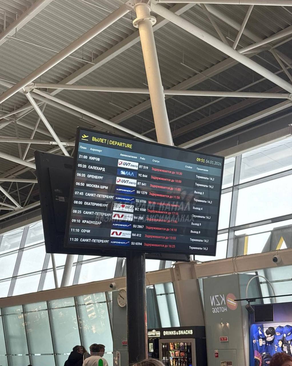 Из-за непогоды в аэропорту массовые задержки рейсов, некоторые из них отменяют.